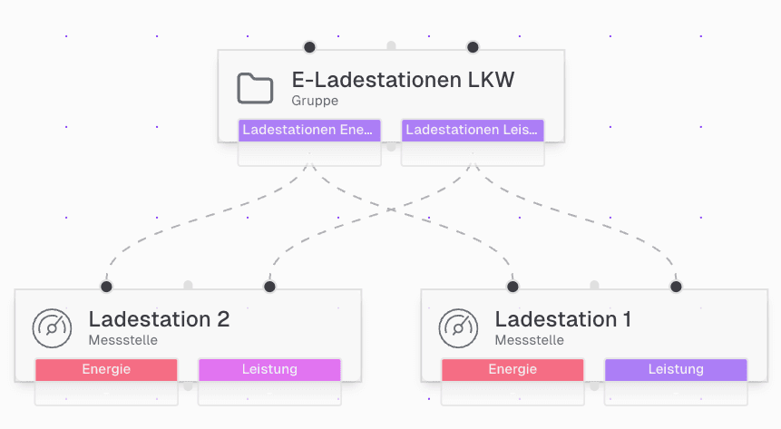 Diese Elemente sind für die Abbildung einer hierarchischen Struktur gedacht, beispielsweise ein Areal mit drei Gebäuden von denen jedes 5 Nutzobjekte enthält. Datenpunkte können auf jedem Element erstellt werden, Messstellen und Geräte werden jedoch wiederum einem dieser hierarchischen Elemente untergeordnet